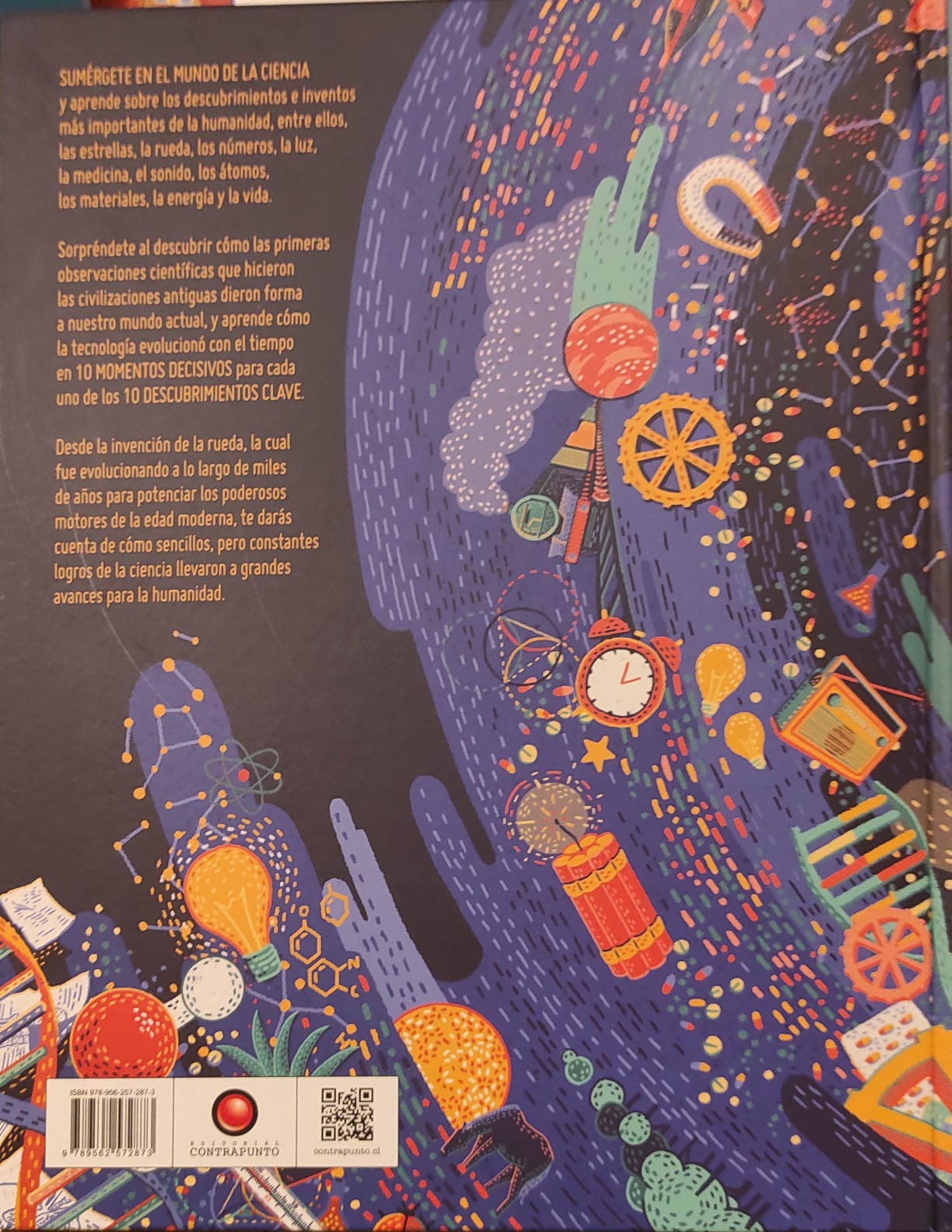 Sumérgete en el mundo de la ciencia y aprende sobre los descubrimientos e inventos más importantes de la humanidad, entre ellos, las estrellas, la rueda, los números, la luz, la medicina, el sonido, los átomos, los materiales, la energía y la vida.