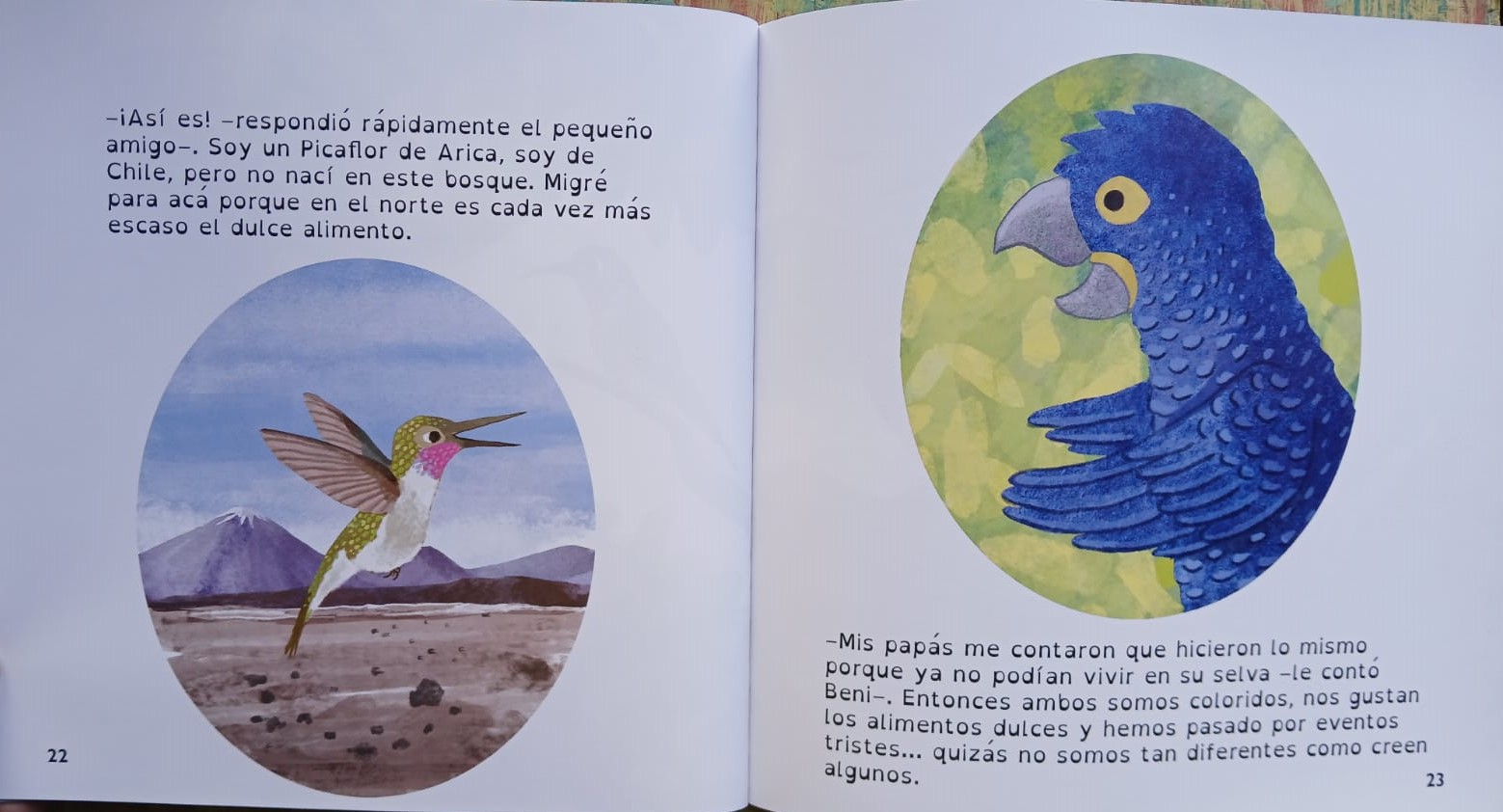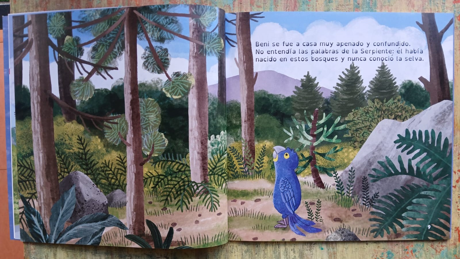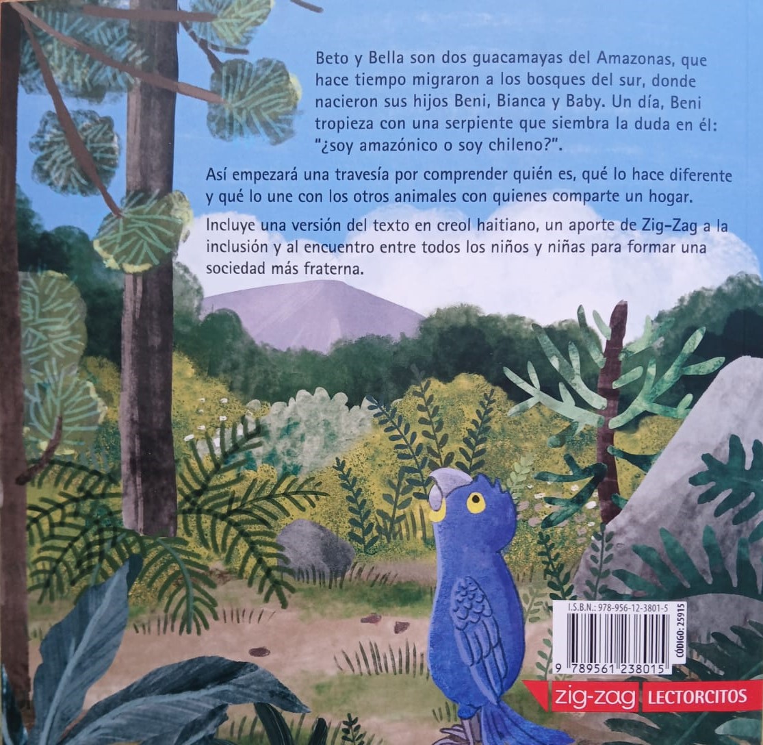 Beto y Bella son dos guacamayas del Amazonas, que hace tiempo migraron a los bosques del sur, donde nacieron sus hijos Beni, Bianca y Baby. Un día, Beni tropieza con una serpiente, que siembra la duda en él: “¿soy amazónico o soy chileno?”. Así empezará una travesía por comprender quién es, qué lo hace diferente y qué lo une con los otros animales con quienes comparte un hogar.