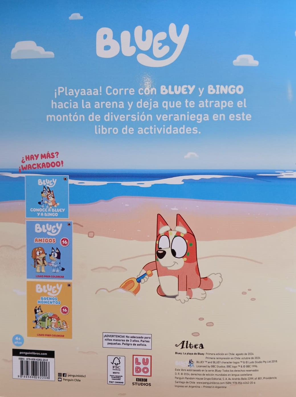Corre con Bluey y Bingo hacia la arena y deja que te atrape el montón de diversión veraniega en este libro de actividades.