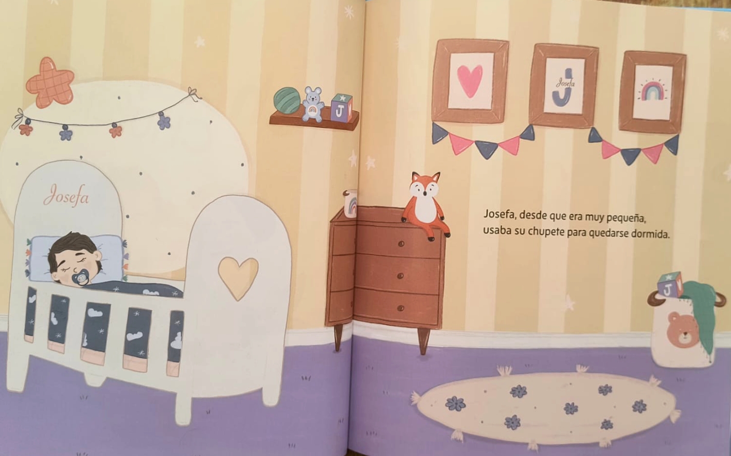 Josefa usaba su chupete desde que era muy pequeña. Era su compañero para dormir, para calmarse en momentos difíciles y para sentirse segura, pero ahora ha llegado el momento de decirle adiós. Te invito a ser parte de esta historia llena de emociones, en la que Josefa, con la ayuda de su familia, descubre que hay otras formas de encontrar la calma y la seguridad que tanto necesita.