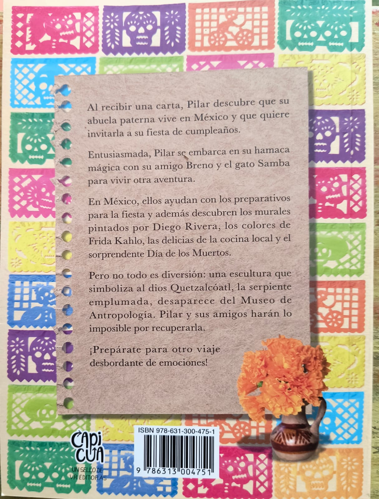 Pilar descubre que tiene una abuela en México y viaja con Breno y Samba por la red mágica a Ciudad de México. Allí conoce a su familia, explora templos, murales y la celebración del Día de los Muertos. Pero todo cambia cuando roban una valiosa escultura del Museo de Antropología. Decidida a ayudar, Pilar sigue pistas y vive una aventura llena de misterio, historia y acción, convirtiéndose en una heroína inesperada.