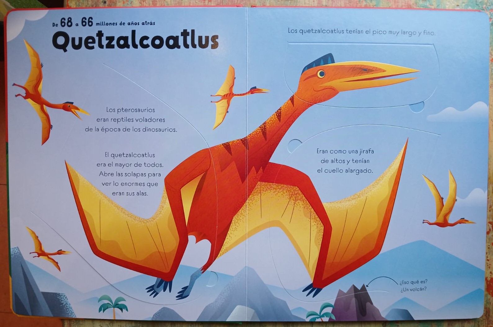 Los niños descubrirán un sinfín de datos sobre algunos de los dinosaurios más enormes que existieron, en este libro donde hasta las solapas son de gran tamaño. Podrán observar como un tiranosaurio se enfrenta a un anquilosaurio, ver los huesos de un enorme estegosaurio y averiguar cuál era la envergadura del pterosaurio más grande, entre otras cosas. Además, incluye una guía para aprender a pronunciar los nombres correctamente.