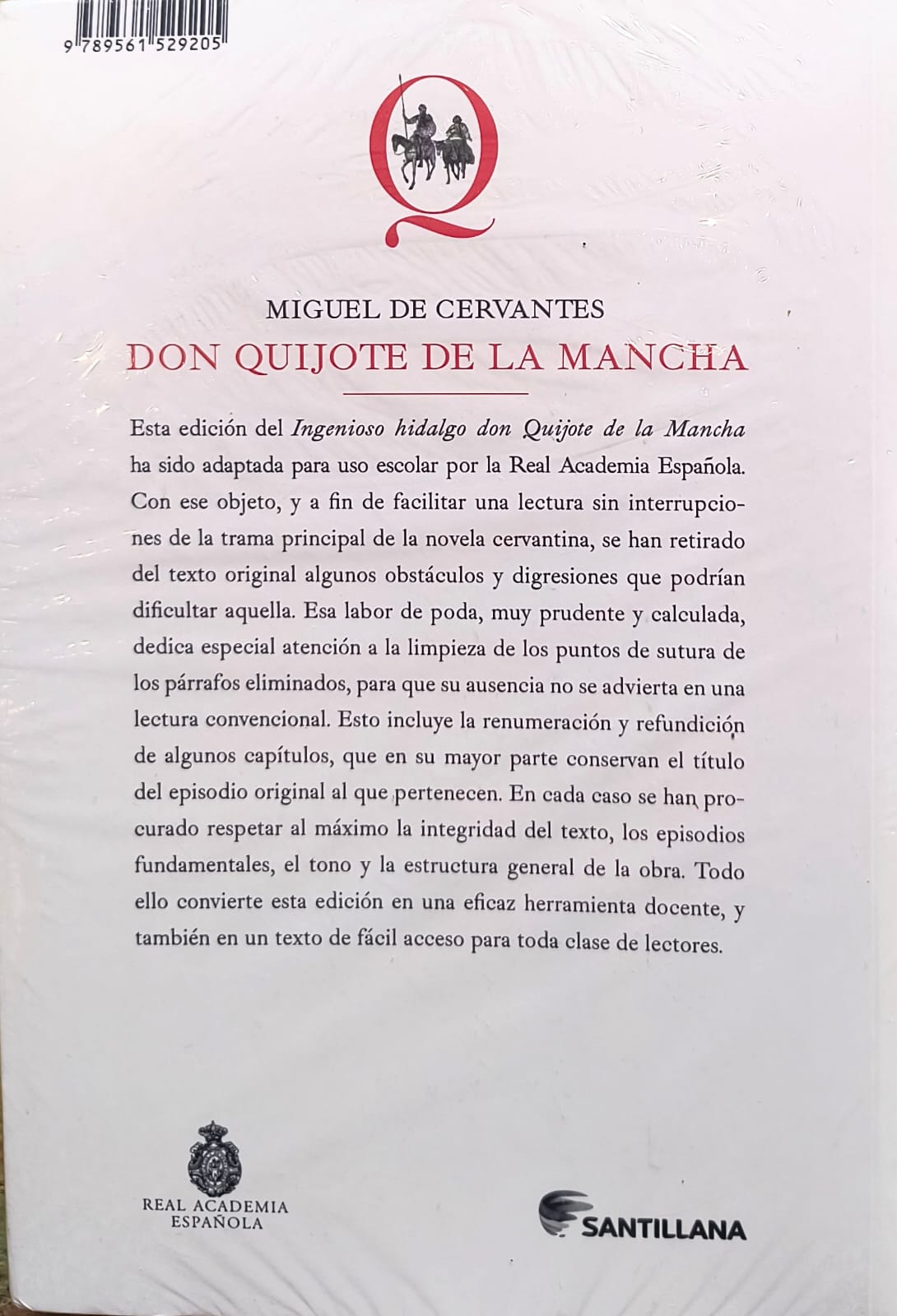 Disfruta de la esencia de El Quijote. Una excelente edición de la Real Academia Española, adaptada por Arturo Pérez- Reverte. Esta edición del Ingenioso hidalgo don Quijote de la Mancha ha sido adaptada para uso escolar por la Real Academia Española. Con ese objeto, y a fin de facilitar una lectura sin interrupciones de la trama principal de la novela cervantina, se han retirado del texto original algunos obstáculos y digresiones que podrían dificultar aquella. Esa labor de poda, muy prudente y calculada, dedica especial atención a la limpieza de los puntos de sutura de los párrafos eliminados, para que su ausencia no se advierta en una lectura convencional. Esto incluye la renumeración y refundición de algunos capítulos, que en su mayor parte conservan el título del episodio original al que pertenecen. En cada caso se han procurado respetar al máximo la integridad del texto, los episodios fundamentales, el tono y la estructura general de la obra. Todo ello convierte esta edición en una eficaz herramienta docente, y también en un texto de fácil acceso para toda clase de lectores.