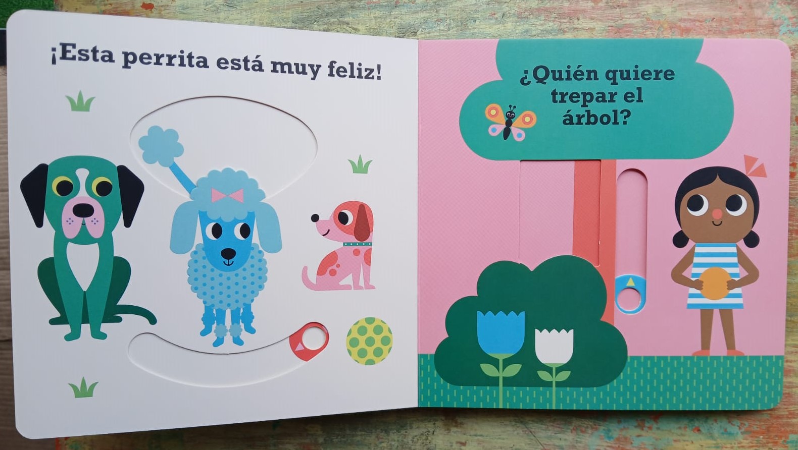 Estos libros llenos de color son perfectos para compartir con los más pequeños y divertirse encontrando variados personajes a través de los 10 deslizadores y un espejo, elementos que los ayudarán a interactuar con las ilustraciones de cada página jugando al tradicional ¿Dónde está? ¡Aquí está!