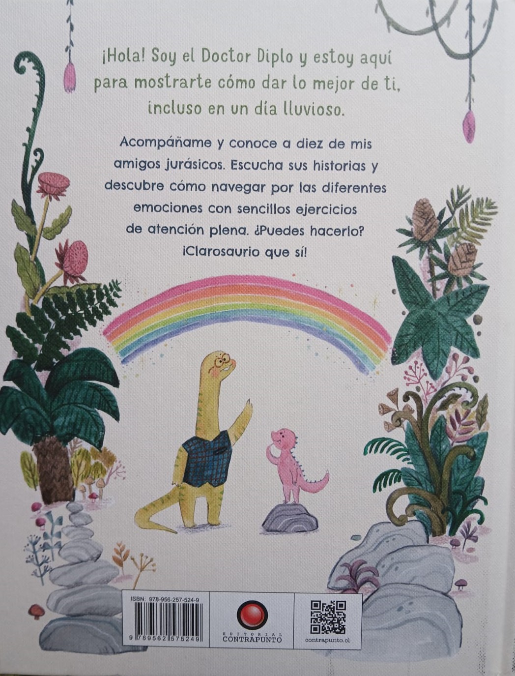 Dr. Diplo es un simpático dinosaurio que, con el paso de los años, se ha transformado en todo un experto en el mundo de las emociones. Acompáñalo, escucha y conoce las historias de diez de sus amigos jurásicos, quienes aprenderán a gestionar y canalizar sus sentimientos a partir de sencillos ejercicios de atención plena como la respiración, la meditación y la visualización positiva. Cada relato, creado en conjunto con la psicóloga clínica y asesora de Mindfulness Amber Owen, proporcionará a niños y niñas una serie de herramientas que los ayudarán a convertirse en personas emocionalmente resilientes y, lo más importante, tendrán la oportunidad de conversar sobre lo que sienten de manera lúdica y cercana.