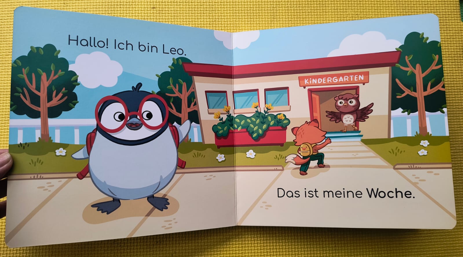 Leo, el mismo personaje de  “Abenteuer in der Antarktis”  en un formato de libro para niños más pequeños, mostrando distintas actividades a realizar cada día de la semana, por lo tanto, con este libro aprenderemos los días de la semana y las actividades típicas que se realizan en el Jardín Infantil, Sala Cuna o Preescolar.