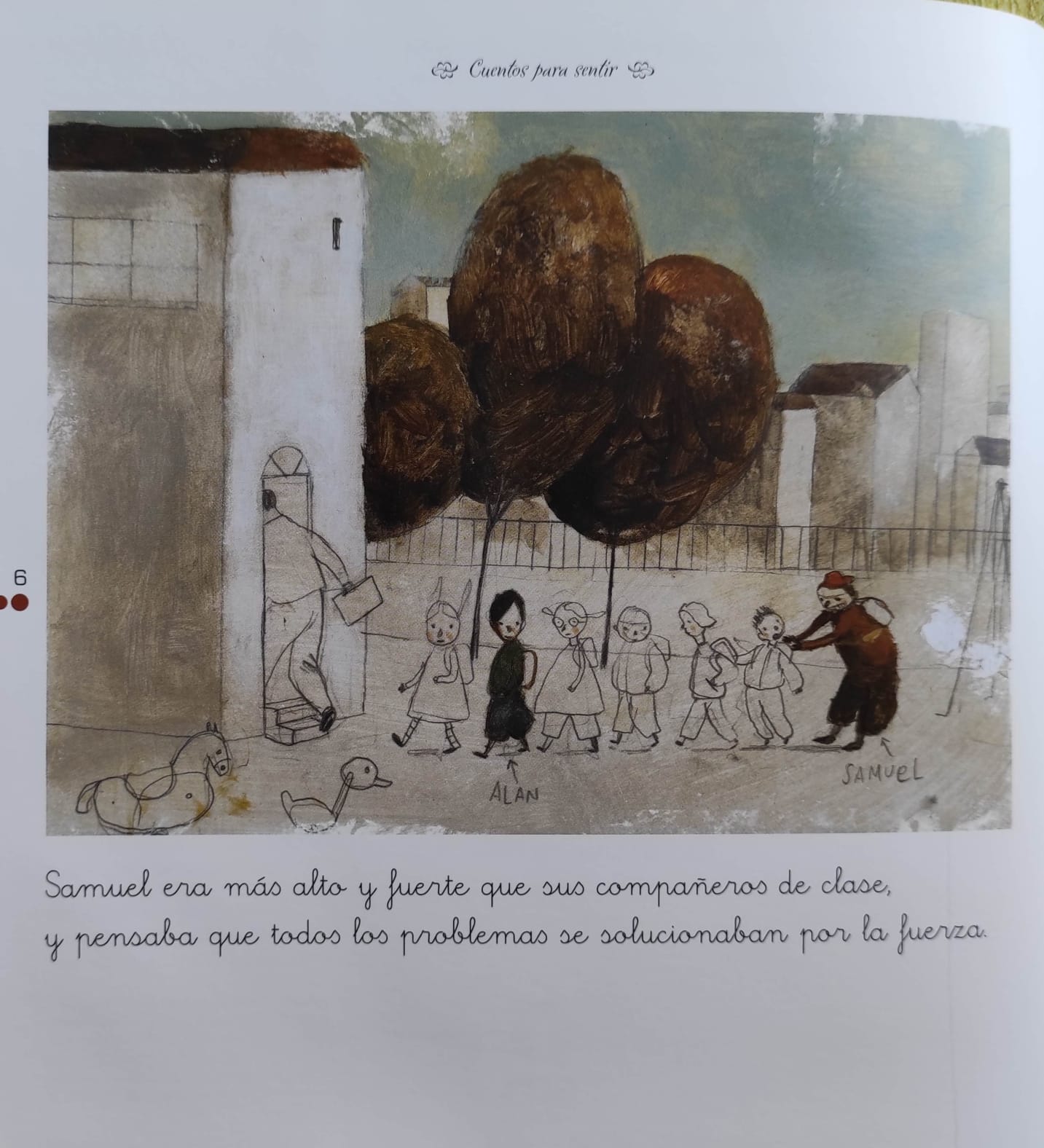 Samuel es más alto que sus compañeros y usa la fuerza para arreglar los problemas. Cuando alguien se niega a hacer lo que él quiere, lo amenaza con propinarle un puñetazo