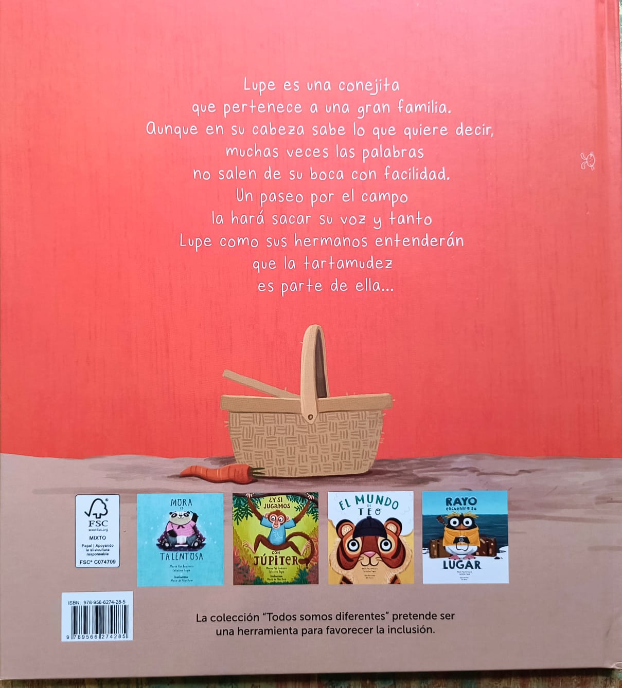 Lupe es una conejita que pertenece a una gran familia. Aunque en su cabeza sabe lo que quiere decir, muchas veces las palabras no salen de su boca con facilidad. Un paseo por el campo lo hará sacar su voz y tanto Lupe como sus hermanos entenderán que la tartamudez es parte de ella…