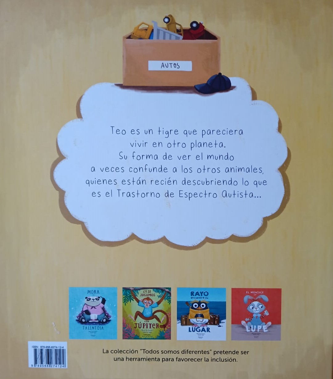 Teo es un tigre que pareciera vivir en otro planeta. Su forma de ver el mundo, a veces, confunde a los otros animales, que están descubriendo lo que es el Trastorno del Espectro Autista.