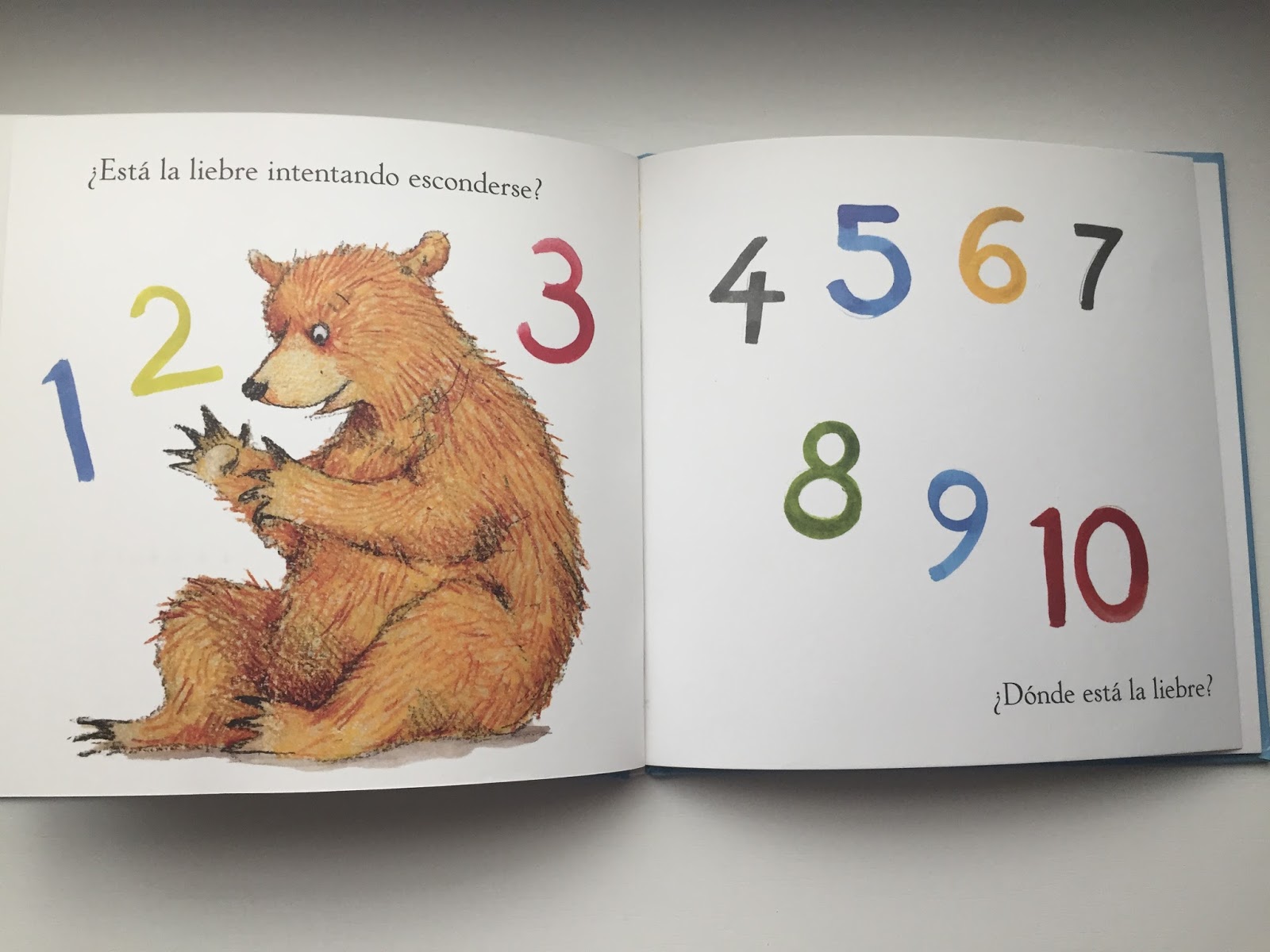 El oso y la liebre vuelven con una nueva aventura, ¿Dónde está el oso?, y esta vez juegan al escondite. La liebre sabe muy bien contar hasta diez y cerrar los ojos, pero el problema es que el oso no sabe esconderse, no le sale nada bien. Cuando se es tan grande como un oso no es fácil ocultarse debajo de una lámpara, y querer pasar desapercibido detrás del cristal de un acuario no es ciertamente una buena idea.