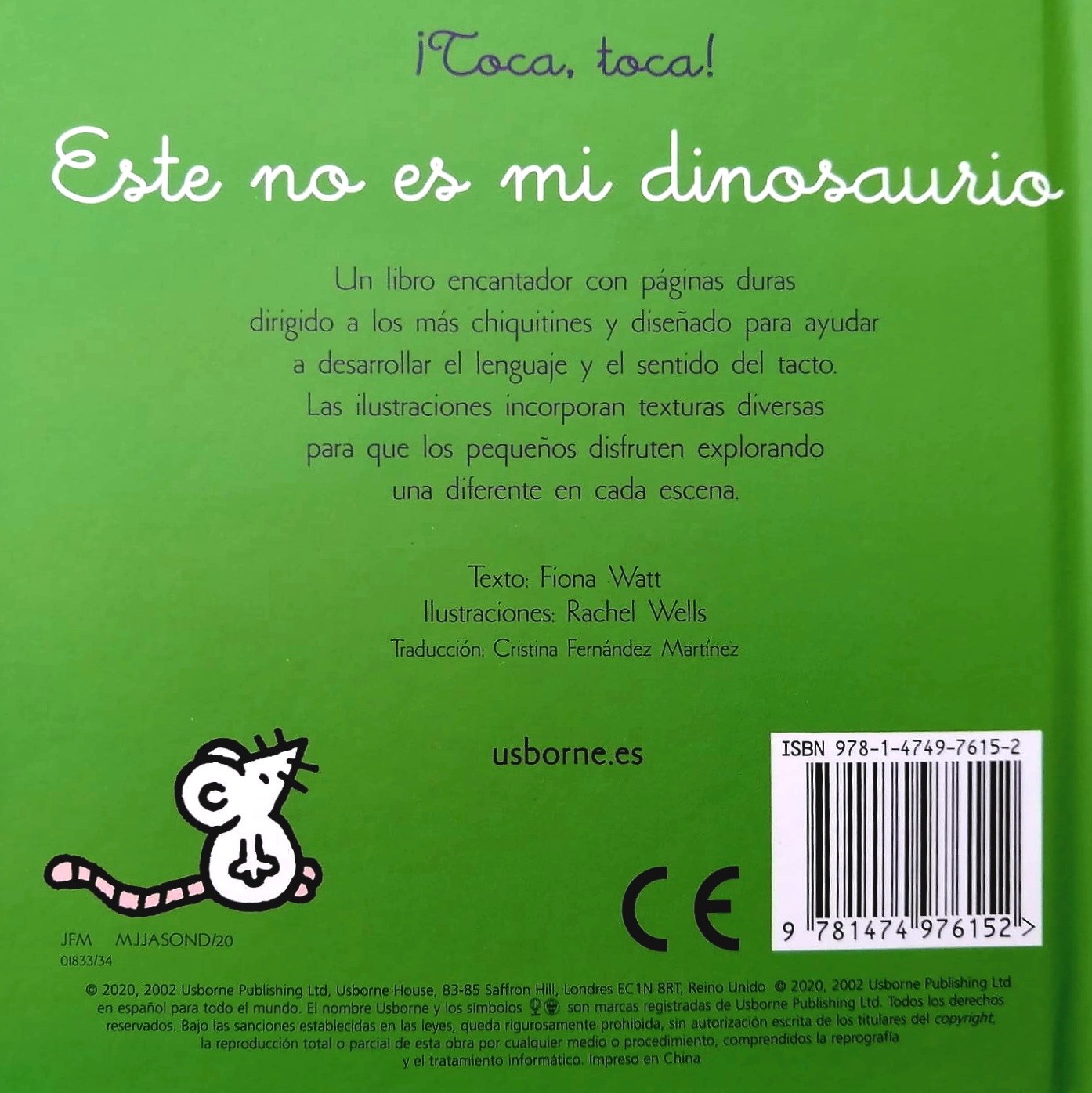 Un libro encantador con páginas rígidas dirigido a los más chiquitines y diseñado para ayudar a desarrollar el lenguaje y el sentido del tacto. Las ilustraciones incorporan texturas diversas para que los pequeños disfruten explorando una diferente en cada escena.
