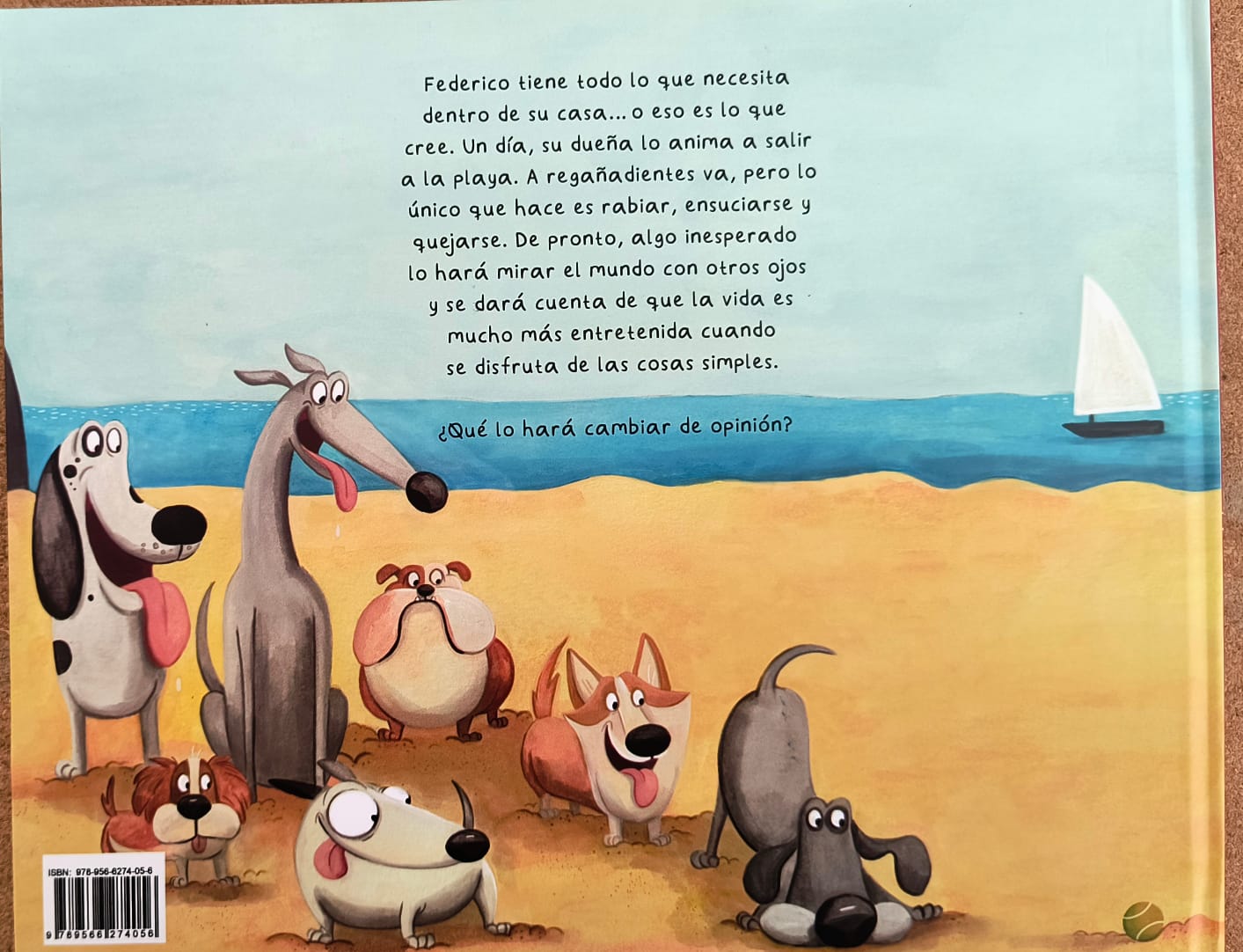 Federico tiene todo lo que necesita dentro de su casa… o eso es lo que cree. Un día, su dueña lo anima a salir a la playa. A regañadientes va, pero lo único que hace es rabiar, ensuciarse y quejarse. De pronto, algo inesperado lo hará mirar el mundo con otros ojos y se dará cuenta de que la vida es mucho más entretenida cuando se disfruta de las cosas simples.