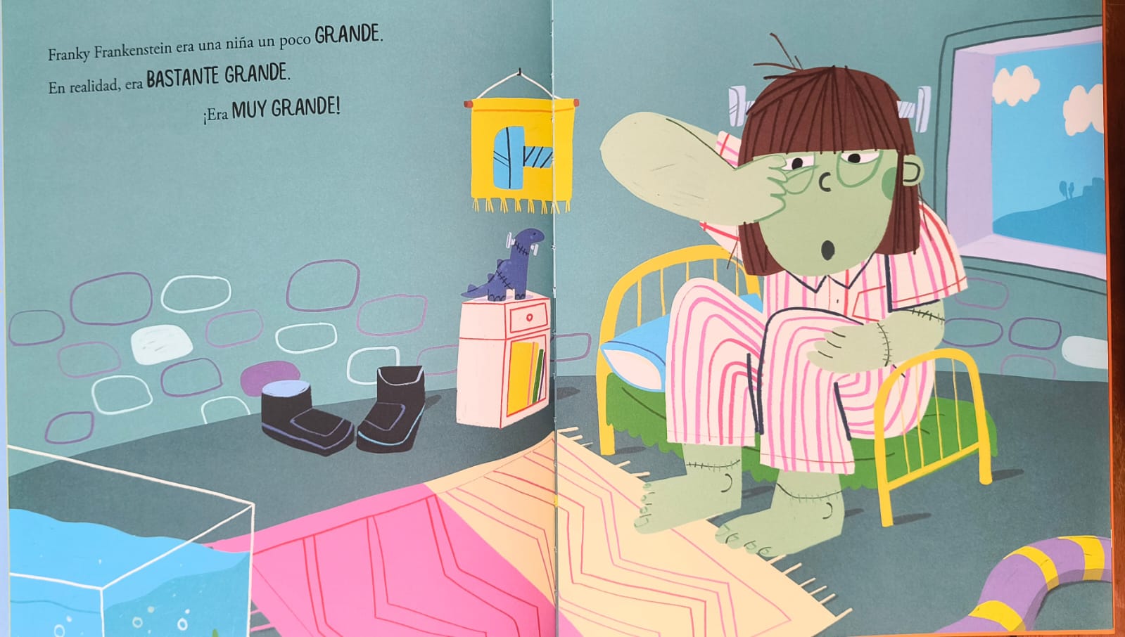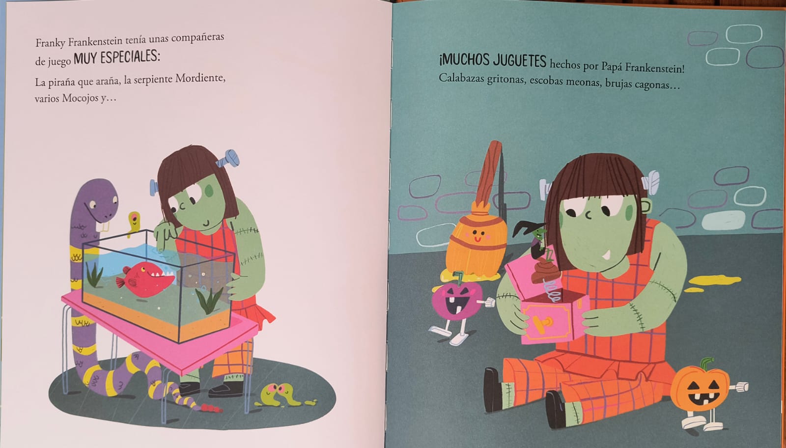Franky es una niña monstrua grande, muy grande. Papá Frankenstein fabrica juguetes para su hija, Hera la calavera es su profesora y sus amigas son la piraña que araña y la serpiente que muerde. Pero lo que Franky realmente quiere es ir al colegio. Su padre teme que los niños y niñas del pueblo se asusten al ver a su hija y no quieran jugar con ella. ¿Conseguirá Franky ir a la escuela?