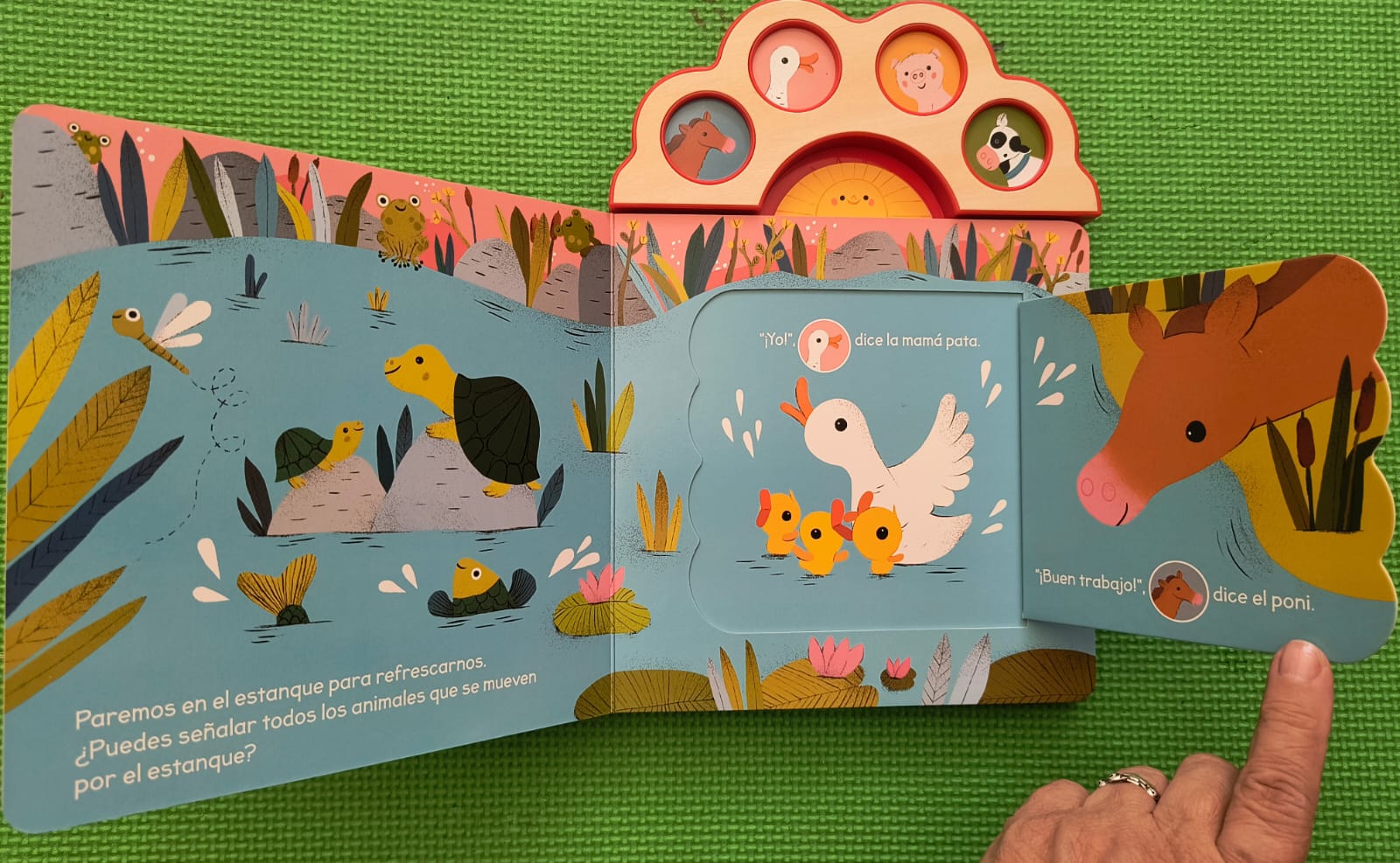 Un universo de descubrimiento y sonido espera a los más pequeños en la granja: en ¡Hola, Granja! Solapas y sonidos cada página invita a explorar. Estas coloridas páginas incluyen grandes solapas para buscar y revelar animales que andan y vuelan por la pradera, y cuatro botones con tres sonidos cada uno que enriquecen la experiencia sensorial y fomentan la relación causa-efecto.
