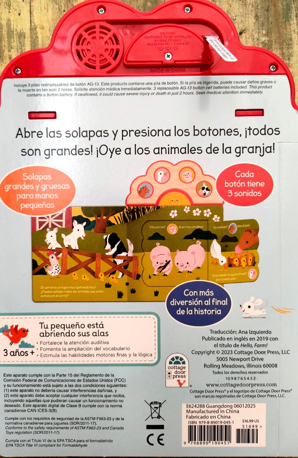 Pensado para las primeras lecturas y el juego interactivo, este libro ayuda a fortalecer la atención auditiva, ampliar el vocabulario y estimular las habilidades motoras finas mediante el manejo de solapas y botones. La propuesta creativa de Carmen Crowe y Maria Neradova combina ilustraciones alegres y un diseño accesible que facilita la exploración autónoma y el aprendizaje lúdico
