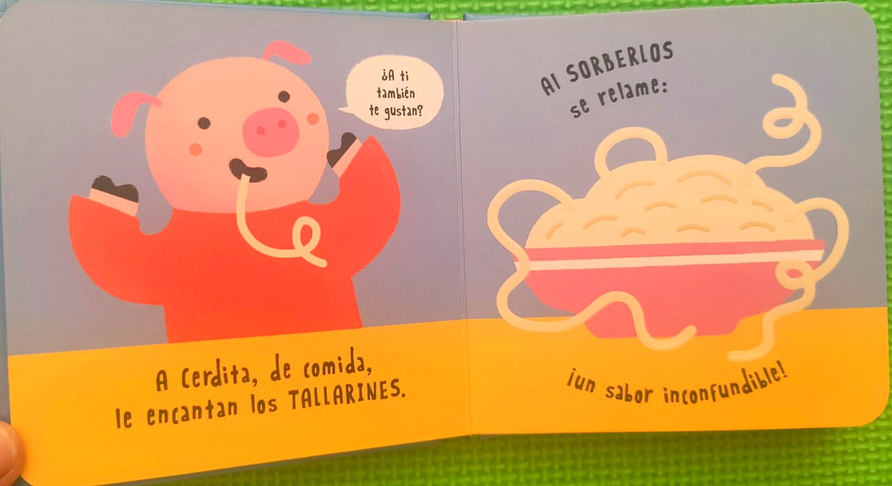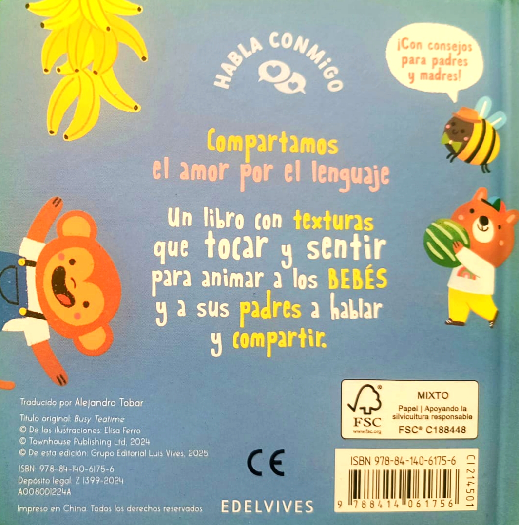 Con un formato pensado para los primeros descubrimientos, Hora de comer. Habla conmigo presenta a Osito, Cerdita y los monos en escenas que convierten la hora de la comida en un juego de aprendizaje. Las páginas incluyen texturas diferentes para tocar, ilustraciones coloridas y textos rimados que favorecen el desarrollo del lenguaje en niños y niñas a partir de los 12 meses.