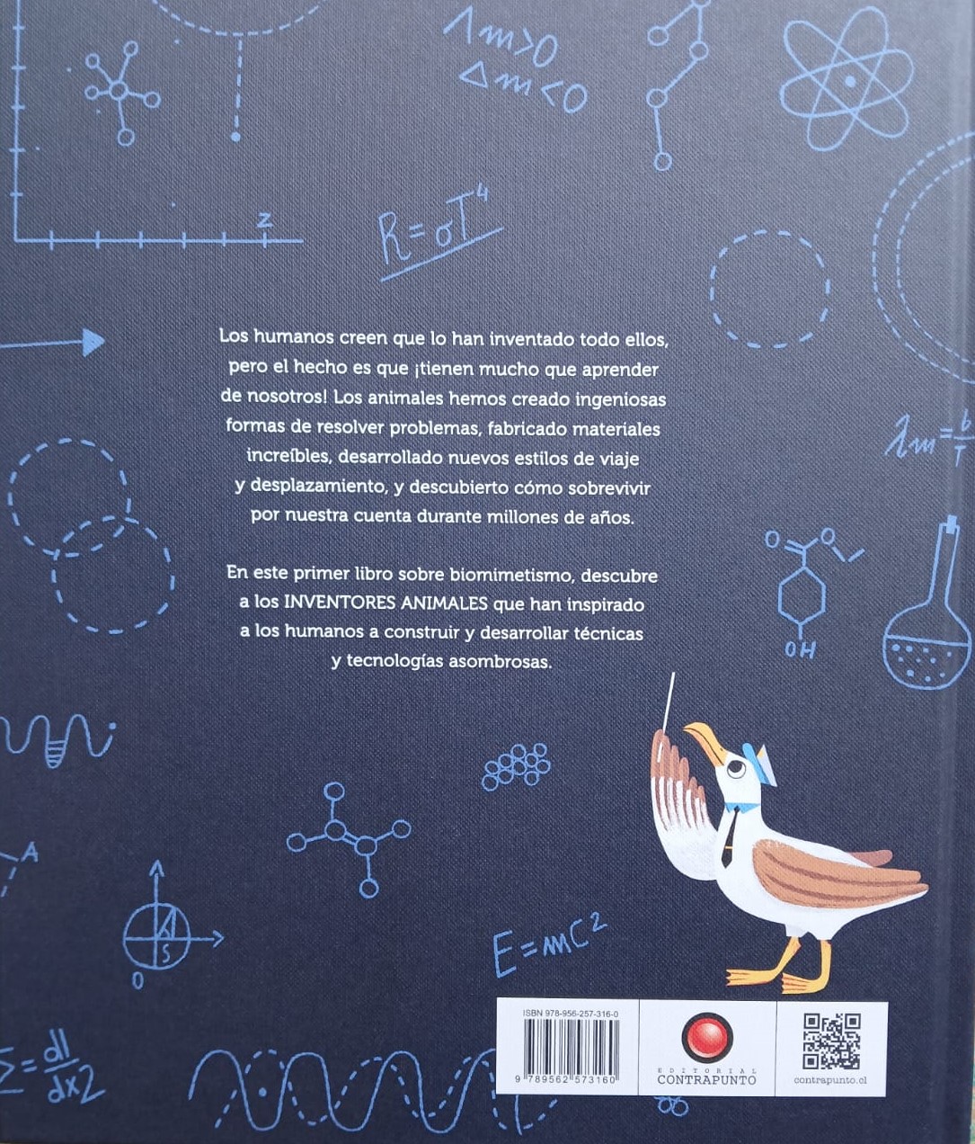 Los humanos creemos que lo hemos inventado todo, ¡pero no! En este libro conocerás una serie de animales que han inspirado al hombre para construir y desarrollar técnicas y tecnologías asombrosas, así como también han sido protagonistas en la resolución de complicados problemas. Y es que ellos han fabricado materiales increíbles, han dado vida a nuevos estilos de viaje y desplazamiento, además de sobrevivir por su propia cuenta durante millones de años. ¿Algunas de sus brillantes ideas? Pegarse a superficies mojadas para ahorrar energía, captar agua del aire o correr cabeza abajo.