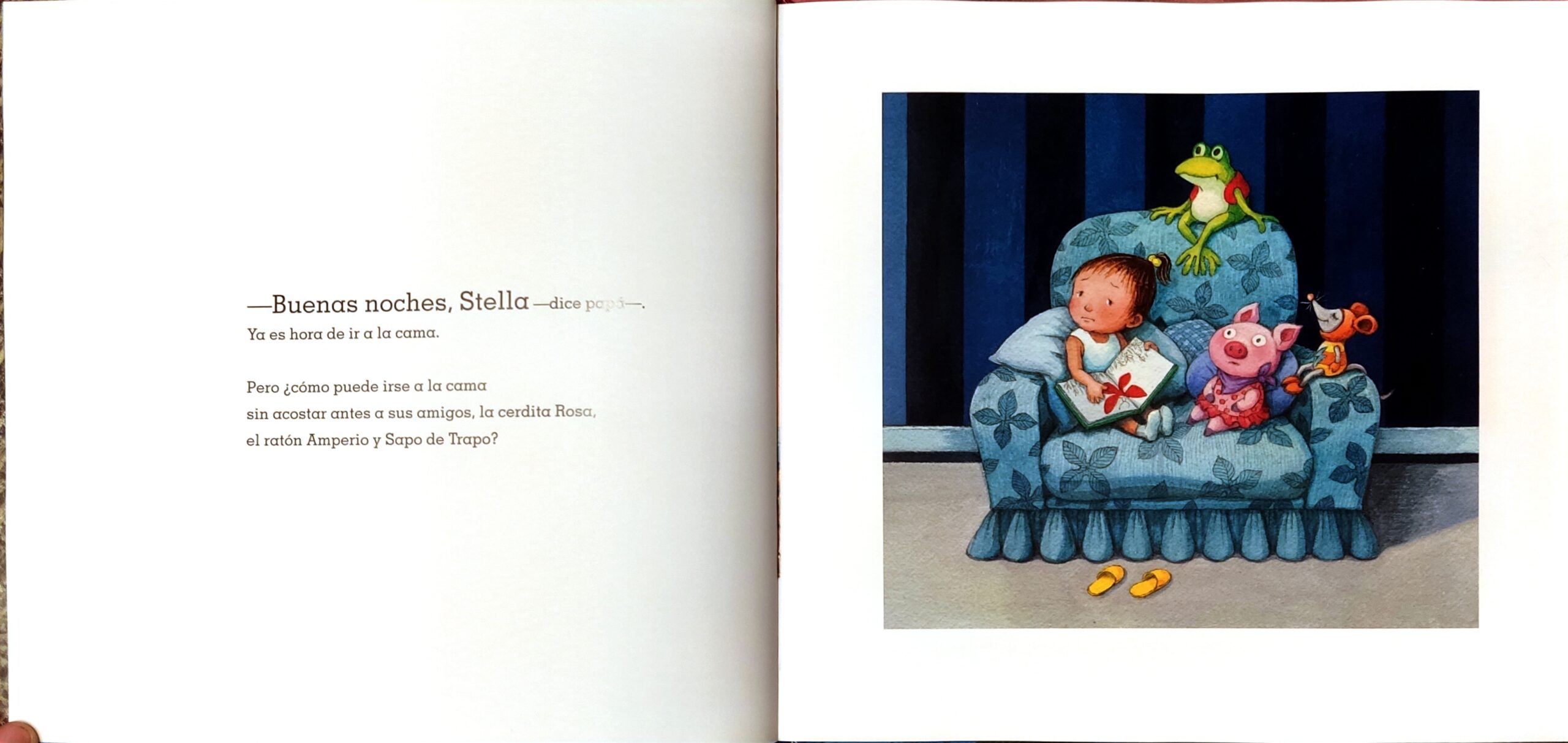 Es hora para Stella de ir a la cama, pero ¿cómo puede hacerlo sin acostar antes a la cerdita Rosa, al ratón Amperio y a Sapo de Trapo?