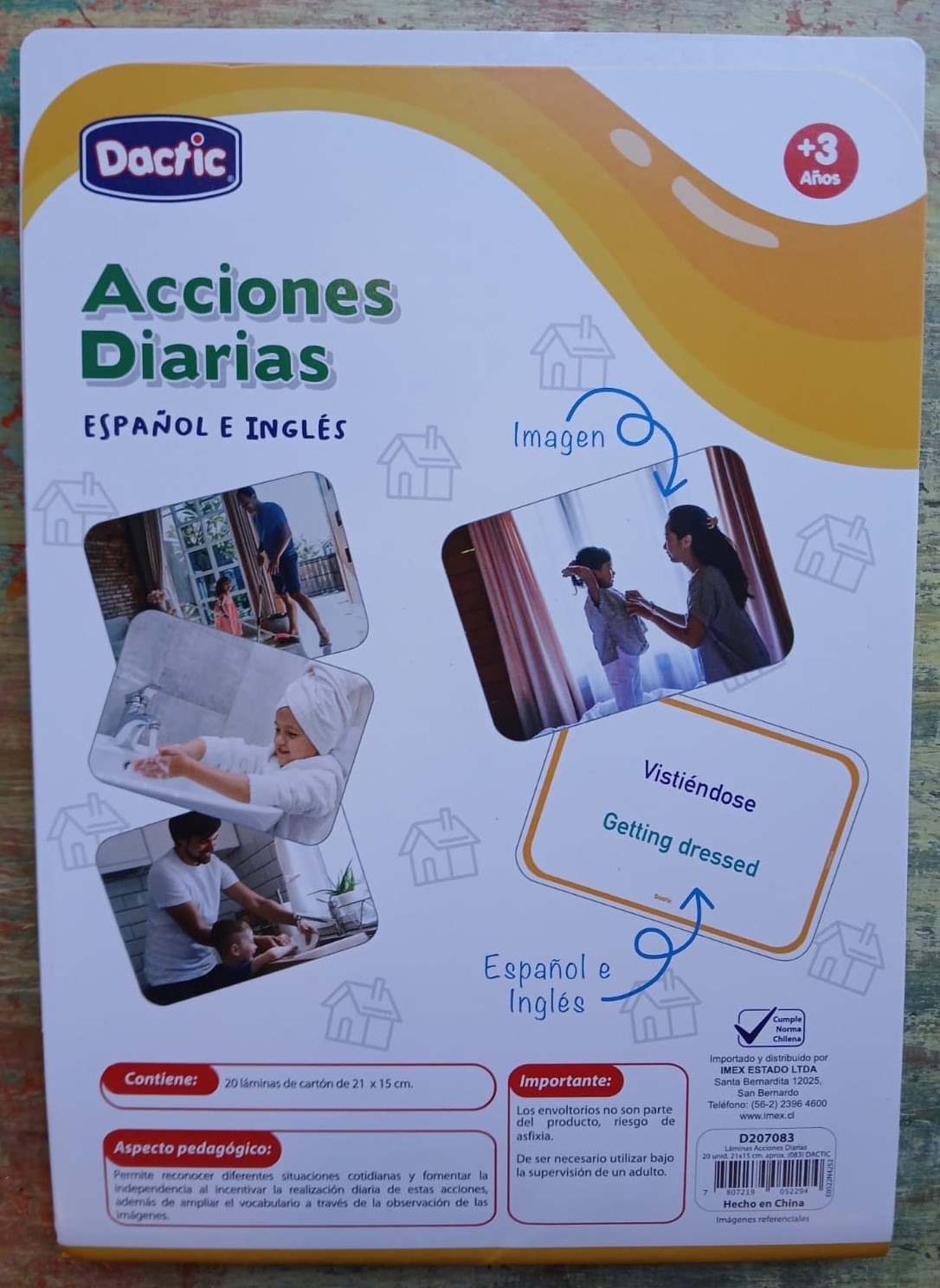 ¡Aprende sobre situaciones cotidianas y amplía tu vocabulario con estas láminas! Incluye 20 láminas con imágenes de situaciones cotidianas. Nombre en inglés y español. Medidas: 21 x 15 cm aprox.