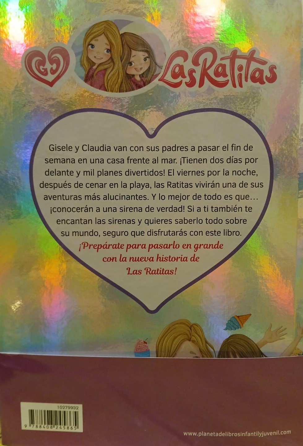 Gisele y Claudia van con sus padres a pasar el fin de semana en una casa frente al mar. ¡Tienen dos días por delante y mil planes divertidos! El viernes por la noche, después de cenar en la playa, las Ratitas vivirán una de sus aventuras más alucinantes. Y lo mejor de todo es que… ¡conocerán a una sirena de verdad! Si a ti también te encantan las sirenas y quieres saberlo todo sobre su mundo, seguro que disfrutarás con este libro. ¡Prepárate para pasarlo en grande con la nueva historia de las Ratitas!