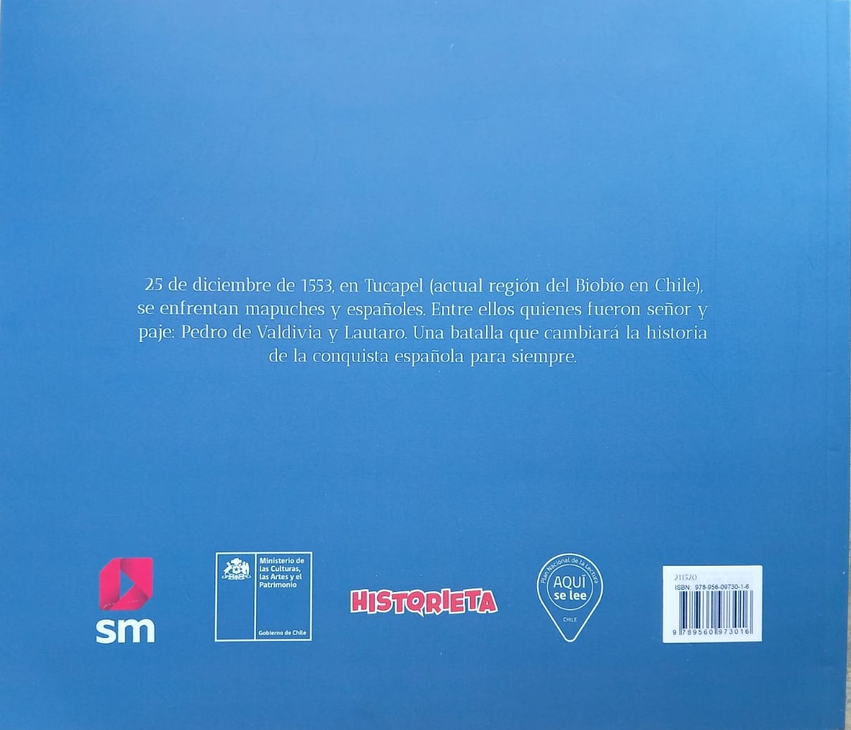 25 de diciembre de 1553, en Tucapel, actual región del Biobío en Chile, se enfrentan mapuches y españoles. Entre ellos quienes fueron señor y paje: Pedro de Valdivia y Lautaro. Una batalla que cambiará la historia de la conquista española para siempre. Esta novela gráfica repasa la vida del toqui Lautaro (o Leftraru), una de las más célebres figuras de la Guerra de Arauco. La obra de Muñoz, Benavides e Inostroza destaca por su narrativa ágil, atrevida, rigurosamente documentada y por el excelente trabajo de ilustración y color que da vida a sus páginas.