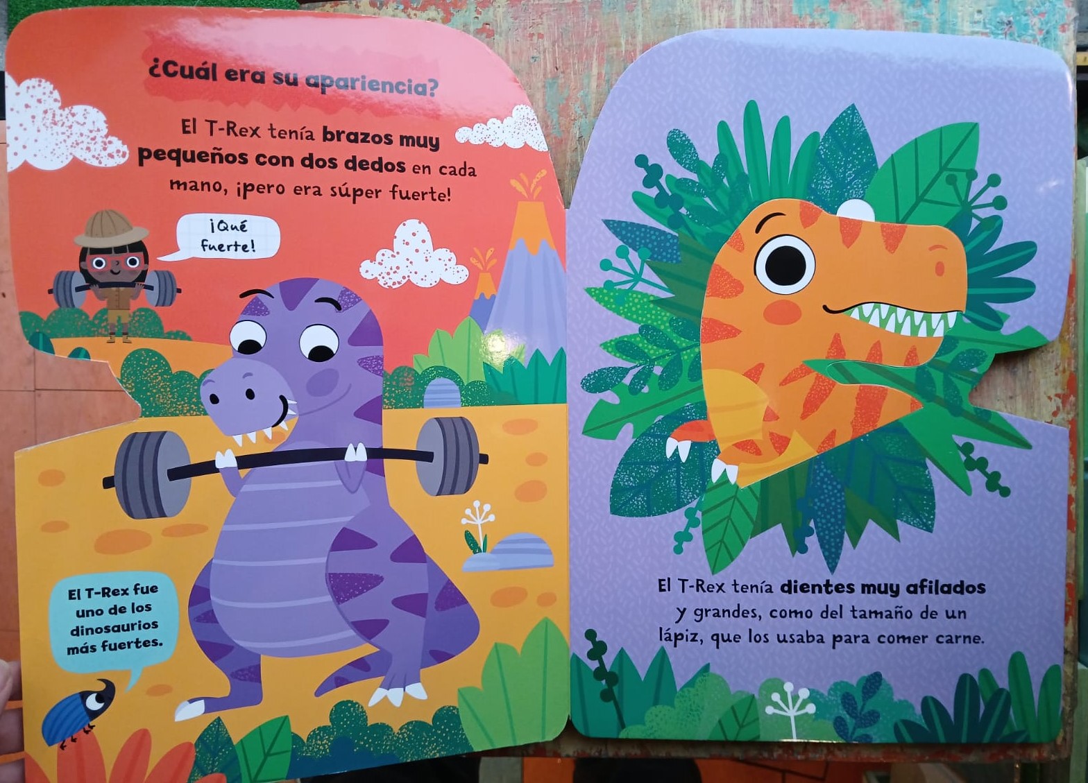 ¡Sorpréndete con el mundo del T-Rex! Levanta las tapas y descubre información increíble sobre estos gigantes de la antigüedad: desde su poderosa estructura corporal hasta los secretos de su dieta, cada dato revelado despertará la curiosidad de los pequeños dino-fans.