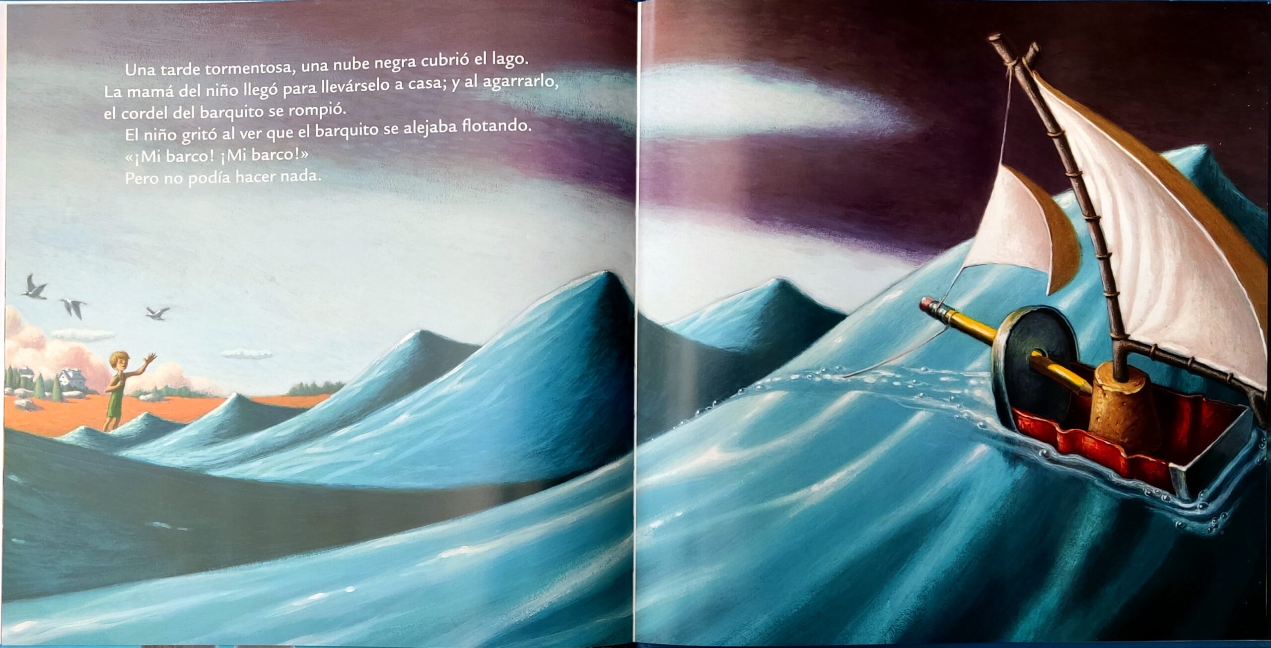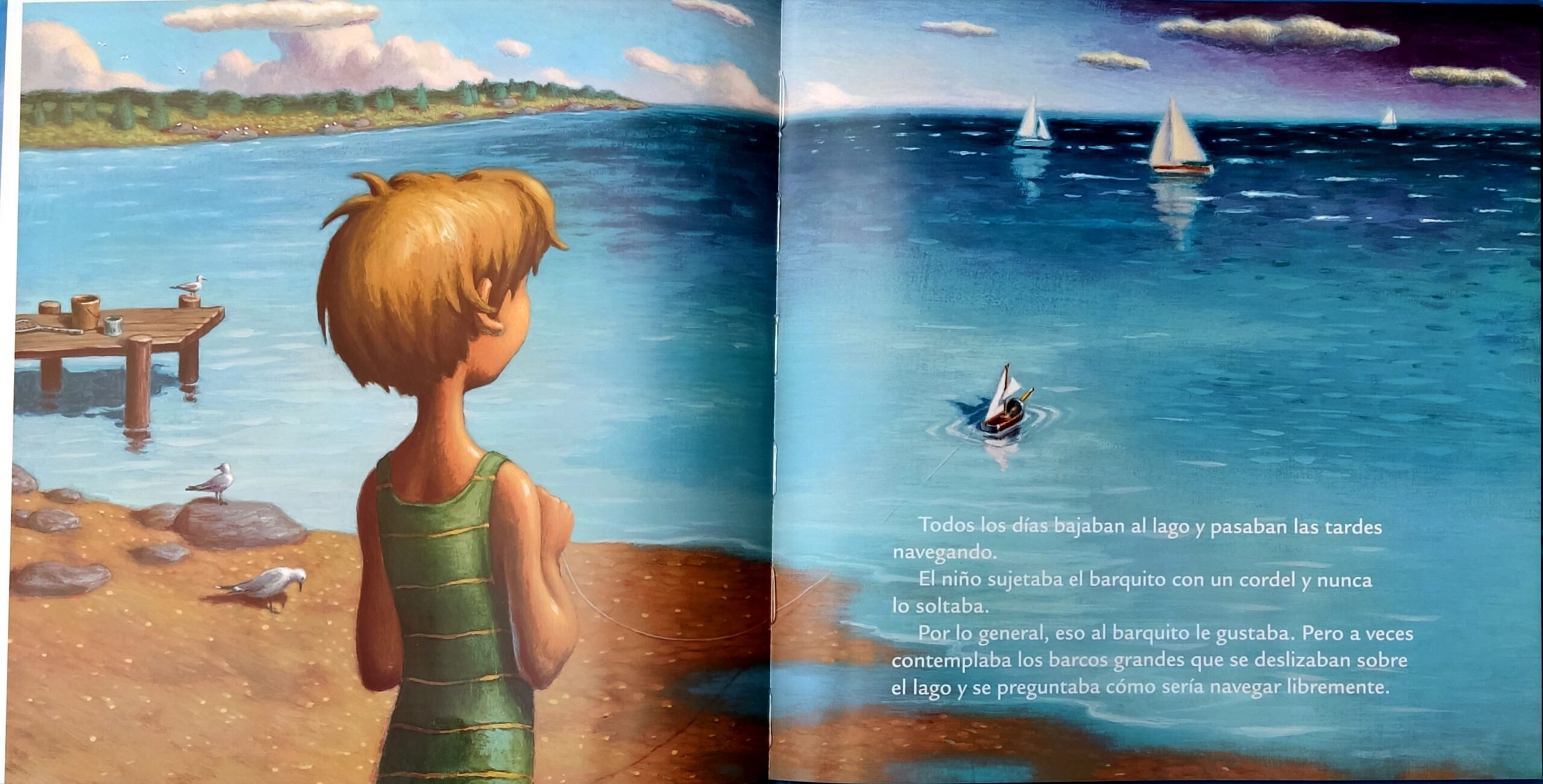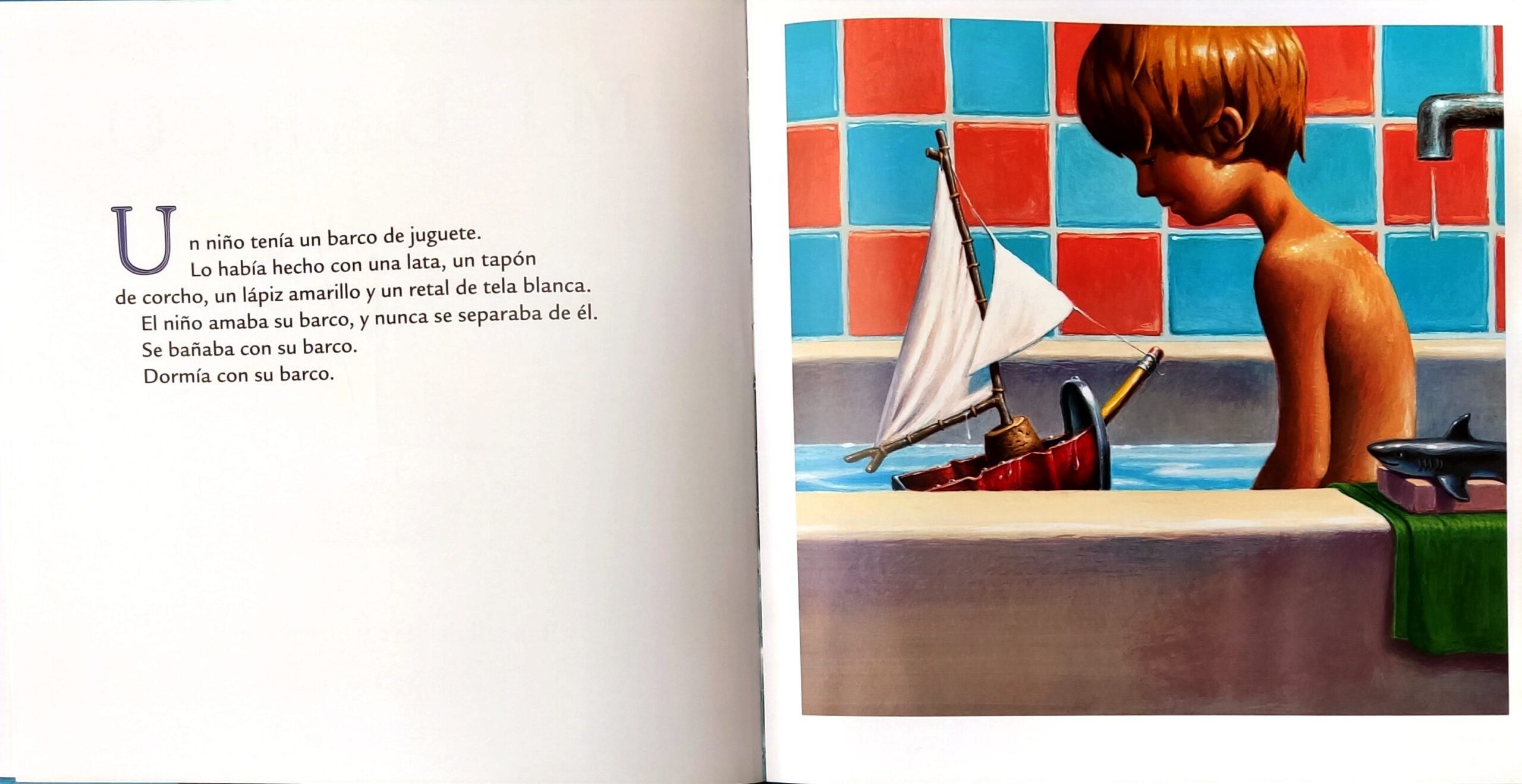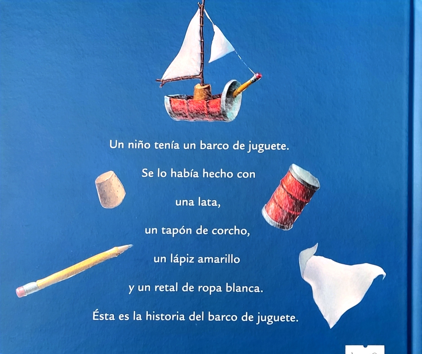 Un niño tenía un barco de juguete. Se lo había hecho con una lata, un tapón de corcho, un lápiz amarillo y un retal de ropa blanca. Esta es la historia del barco de juguete. · Un álbum mágico con ilustraciones hiperrealistas y coloridas. Una metáfora poética sobre la libertad y sus peligros.