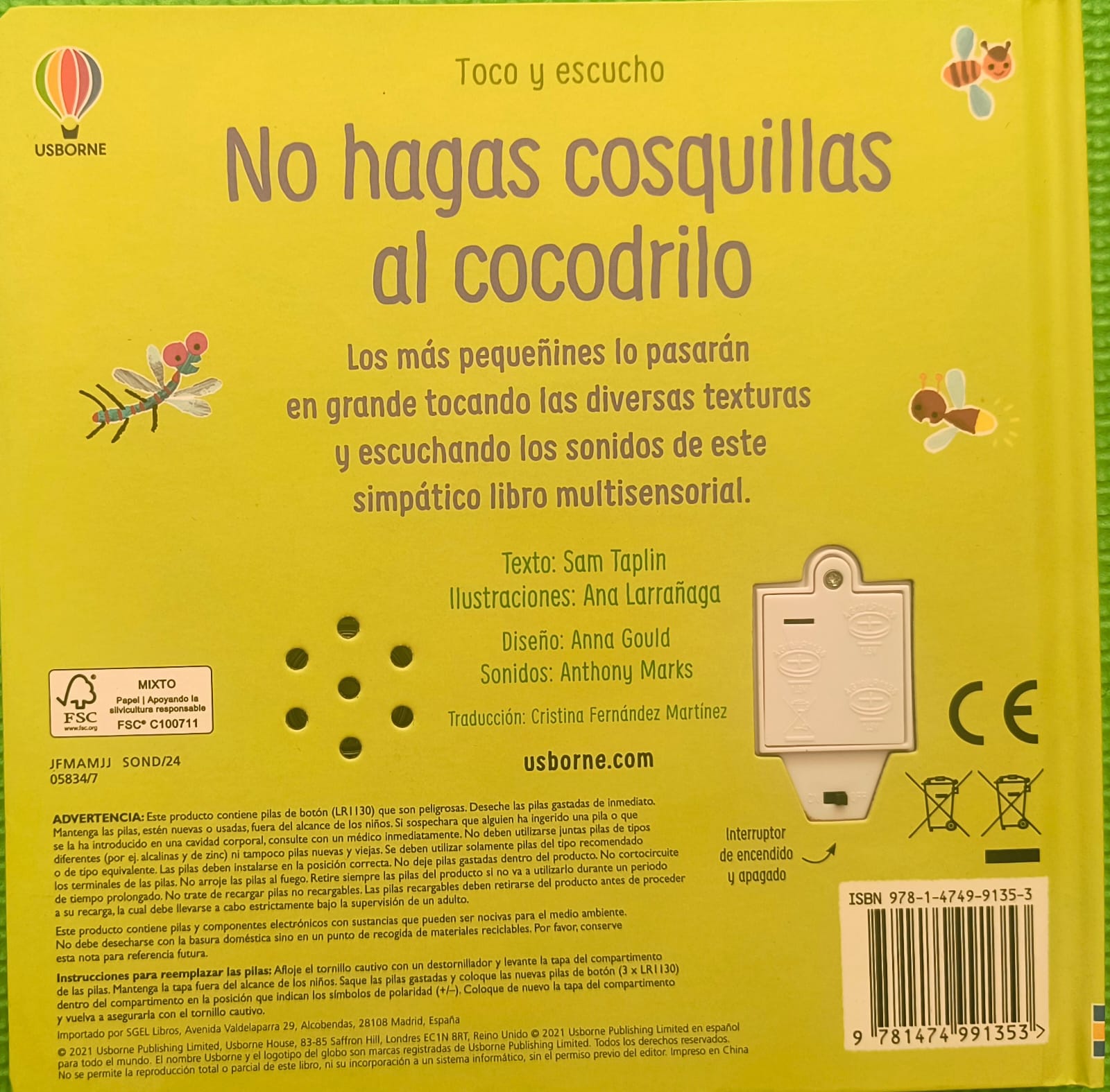Un libro pensado para las primeras exploraciones sensoriales: en No hagas cosquillas al cocodrilo los niños y niñas podrán tocar texturas diferenciadas y escuchar sonidos reales de animales. La propuesta, firmada por Sam Taplin y Ana Martin Larranaga, forma parte de la colección Toco y escucho y está concebida para acompañar los primeros descubrimientos táctiles y auditivos.