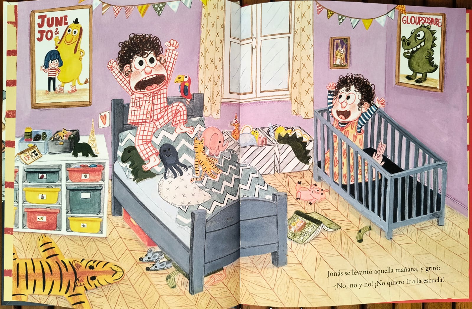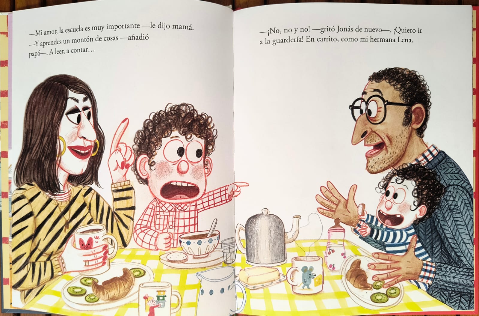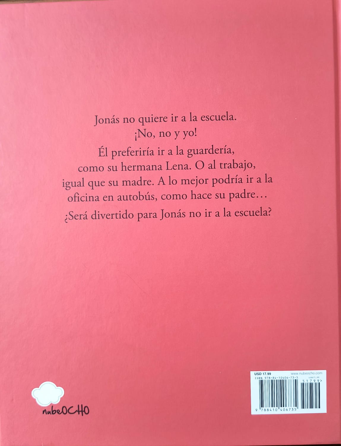 Jonás cree que volver a la guardería como su hermana Lena es mucho más divertido que ir al cole, pero pronto descubre que la realidad es otra. En No quiero ir al cole la autora Amélie Graux narra con ternura y sentido del humor las peripecias de un niño que prueba distintas maneras de divertirse y aprender, desde lidiar con bebés mocosos hasta asumir las obligaciones de mamá y papá.