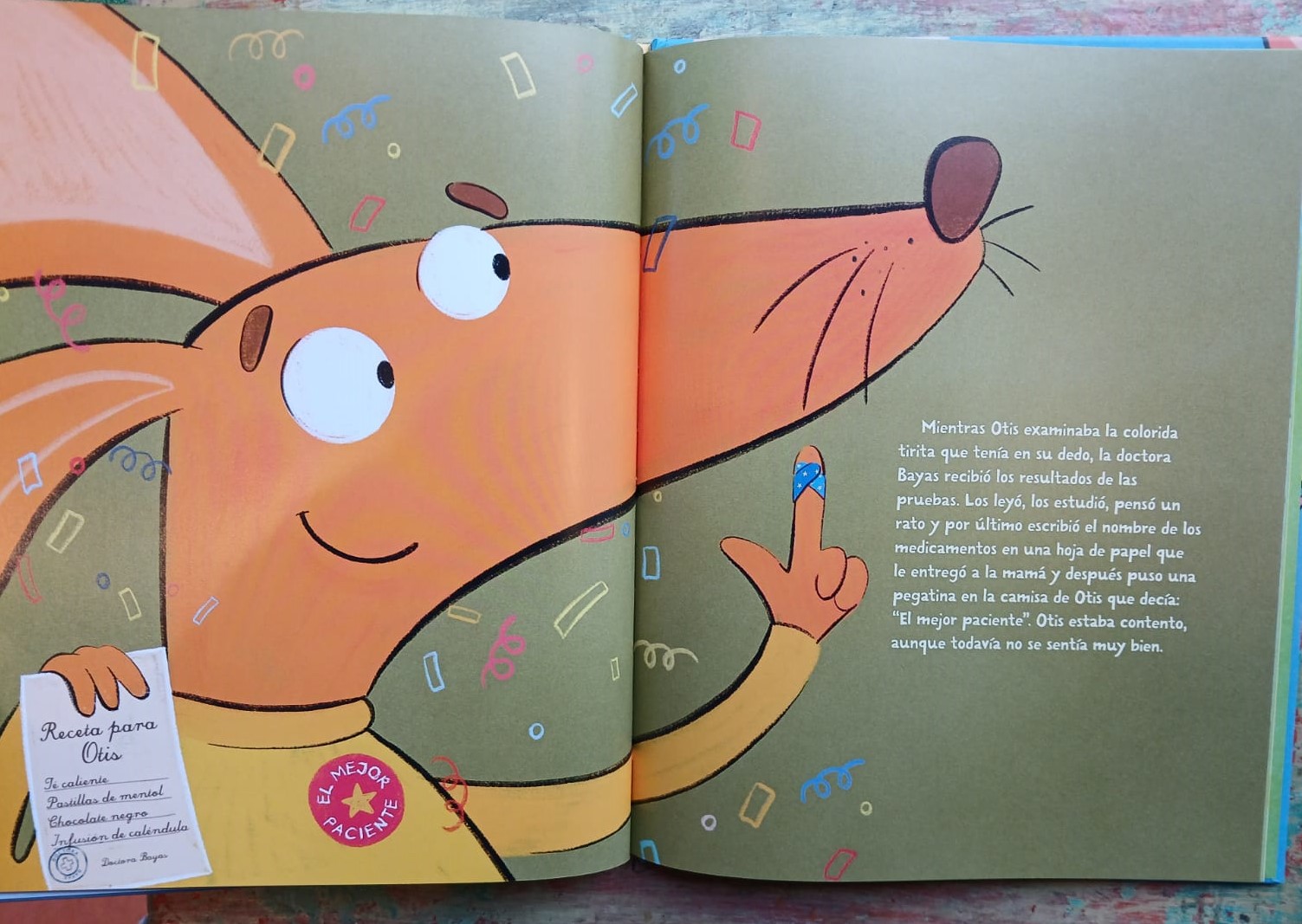 El ratoncito Otis se ha enfermado. Quisiera quedarse en su camita, pero debe ir a ver a la doctora Bayas. Ya ha estado en la clínica antes, pero hoy es la primera vez que le van a hacer un análisis de sangre. Parece que no es tan aterrador como él pensaba.