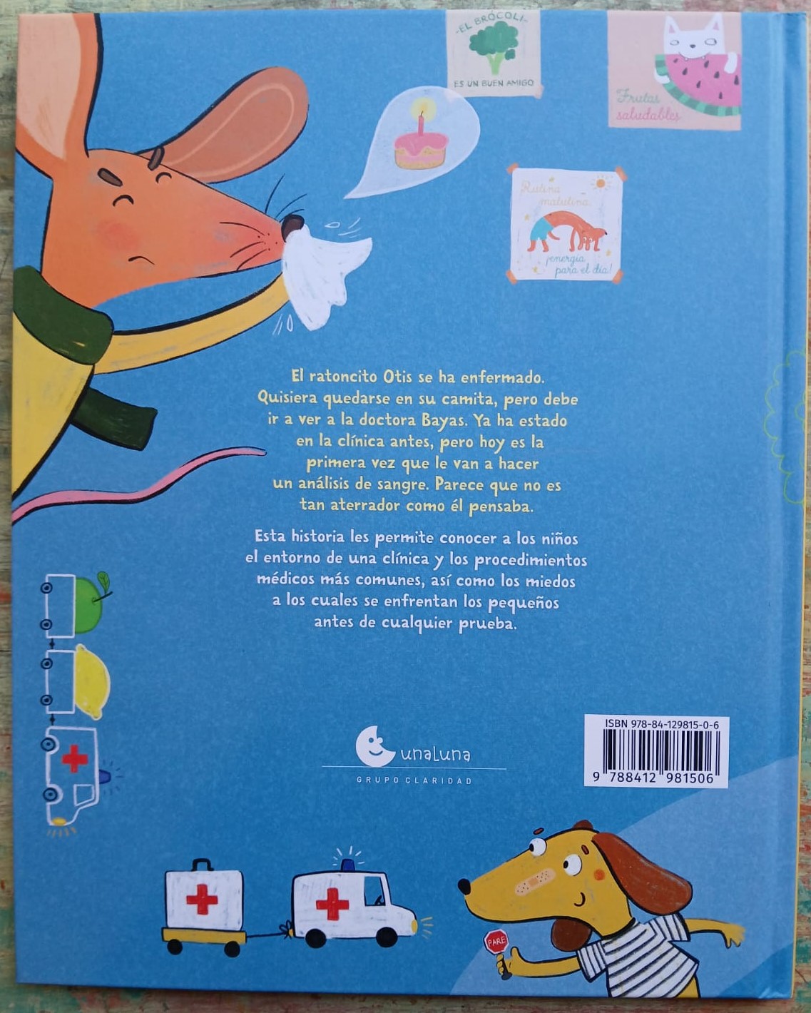 Esta historia les permite conocer a los niños el entorno de una clínica y los procedimientos médicos más comunes, así como los miedos a los cuales se enfrentan los pequeños antes de cualquier prueba.