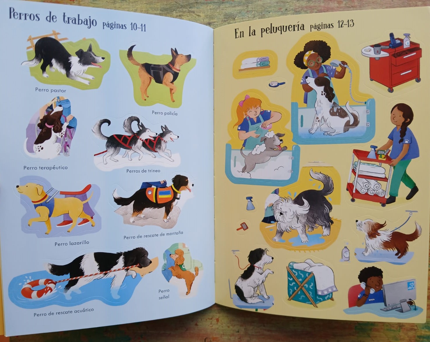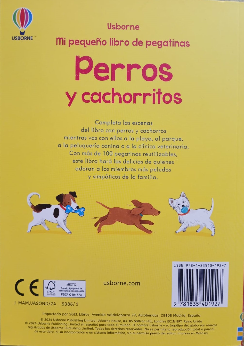 Un libro encantador con más de 100 pegatinas para que los niños se diviertan completando las escenas de perritos juguetones y cachorros simpáticos que pasean por el parque, van a la peluquería o acuden al veterinario.