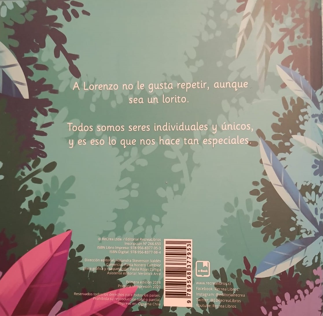 A Lorenzo no le gusta repetir, aunque sea un lorito. Todos somos seres individuales y únicos, y es eso lo que nos hace tan especiales.