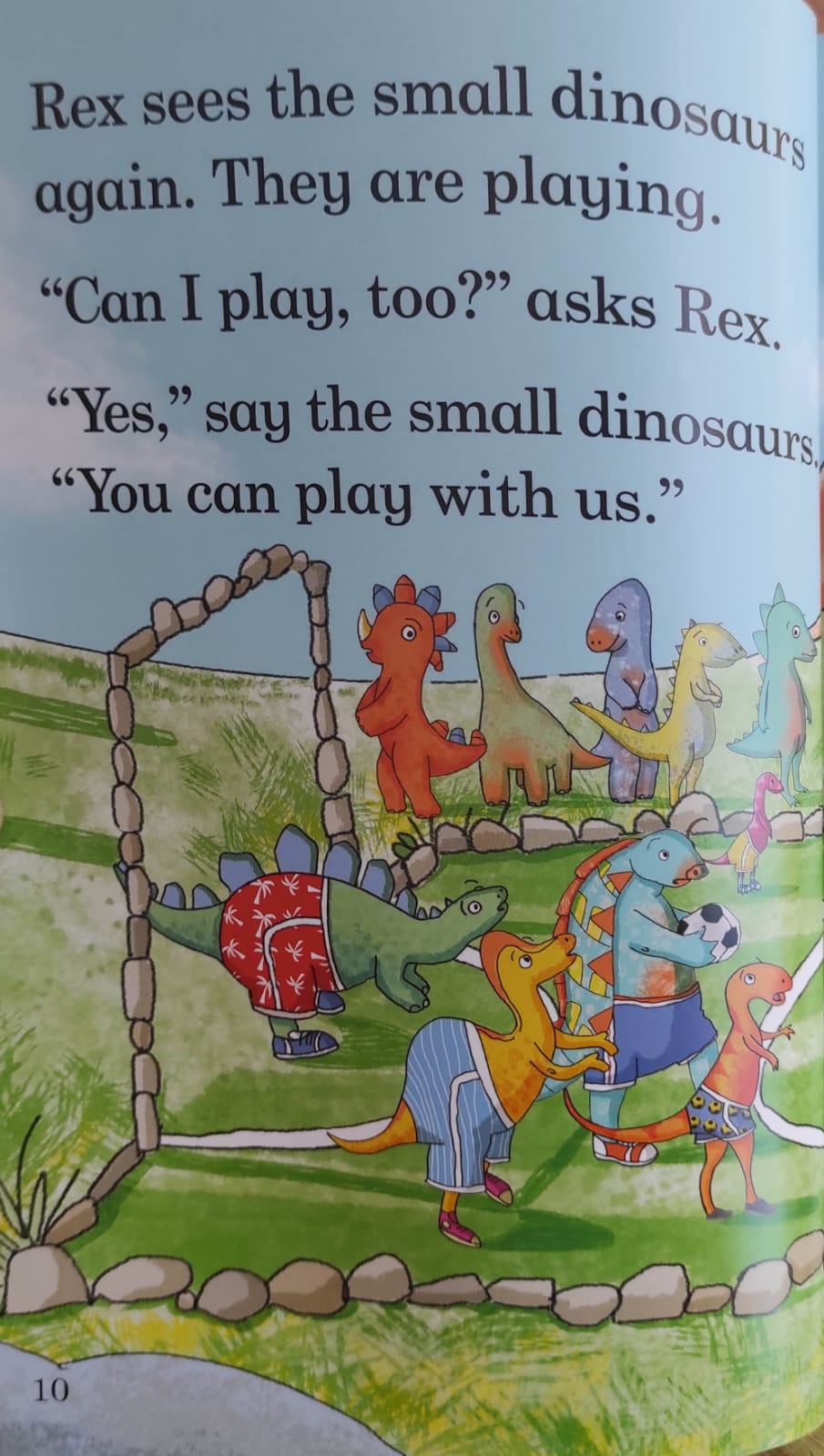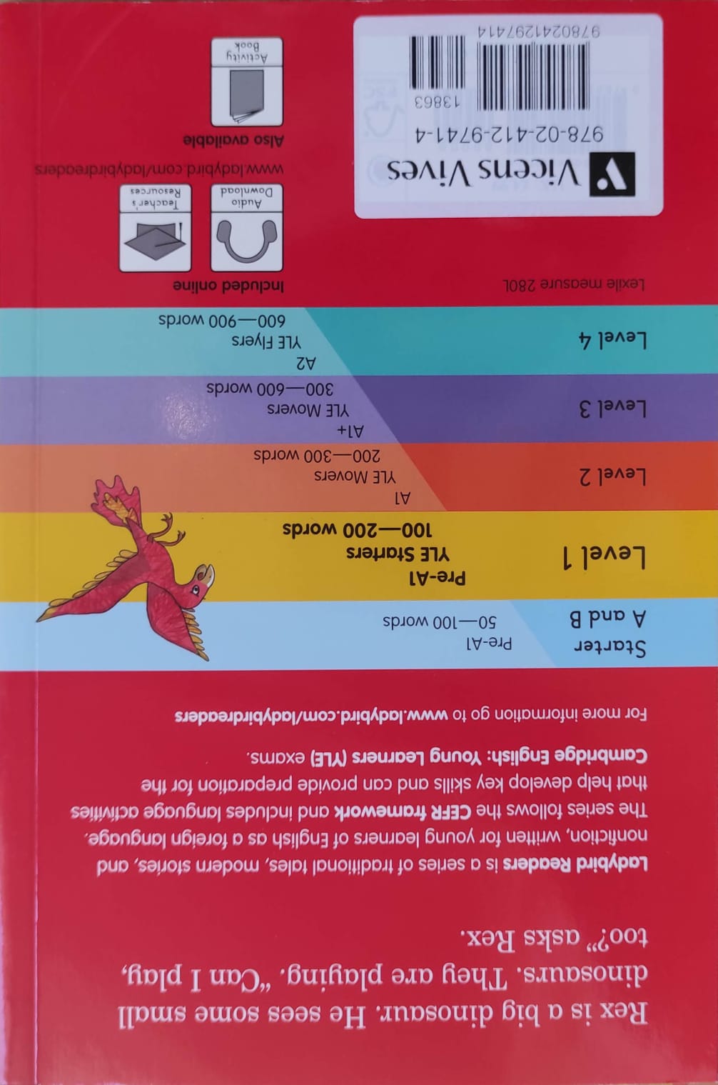 Rex is a big dinosaur. He sees some small dinosaurs. They are playing. “Can I play, too?” asks Rex. Ladybird Readers is a graded reading series of traditional tales, popular characters, modern stories, and non-fiction, written for young learners of English as a foreign or second language