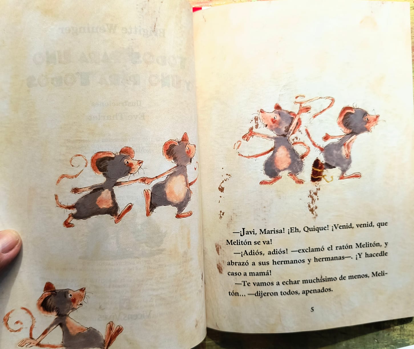 Pese a que el ratón Melitón tiene dificultades para caminar, un buen día emprende un viaje para conocer mundo. Por el camino encuentra a un topo corto de vista pero de agudo olfato, a una rana sorda pero ágil como un mono, a un erizo miedoso pero con una resistente armadura de púas… Así que todos deciden unirse y ayudarse unos a otros para conseguir alcanzar sus sueños.