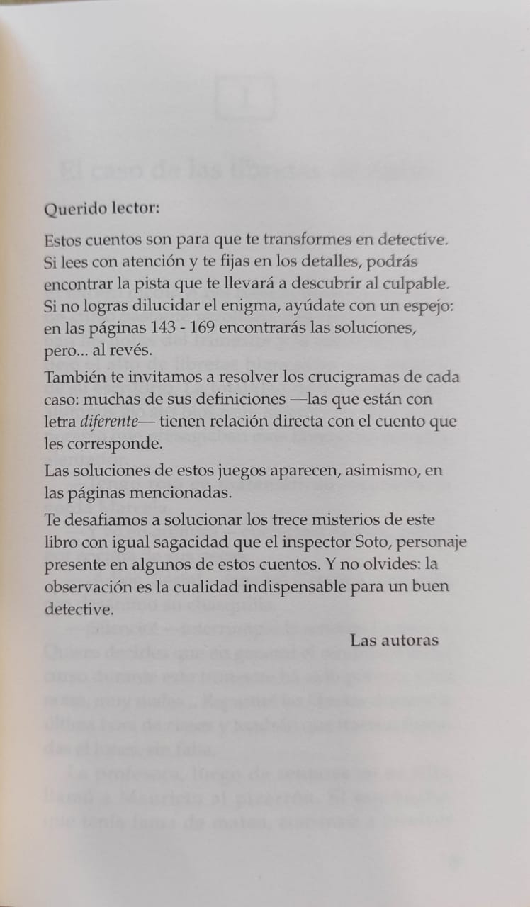 Son trece las incógnitas que hay que resolver en este libro en compañía del inspector Soto. Los lectores deberán estar atentos a todos los detalles, incluso a aquellos que parecen insignificantes.