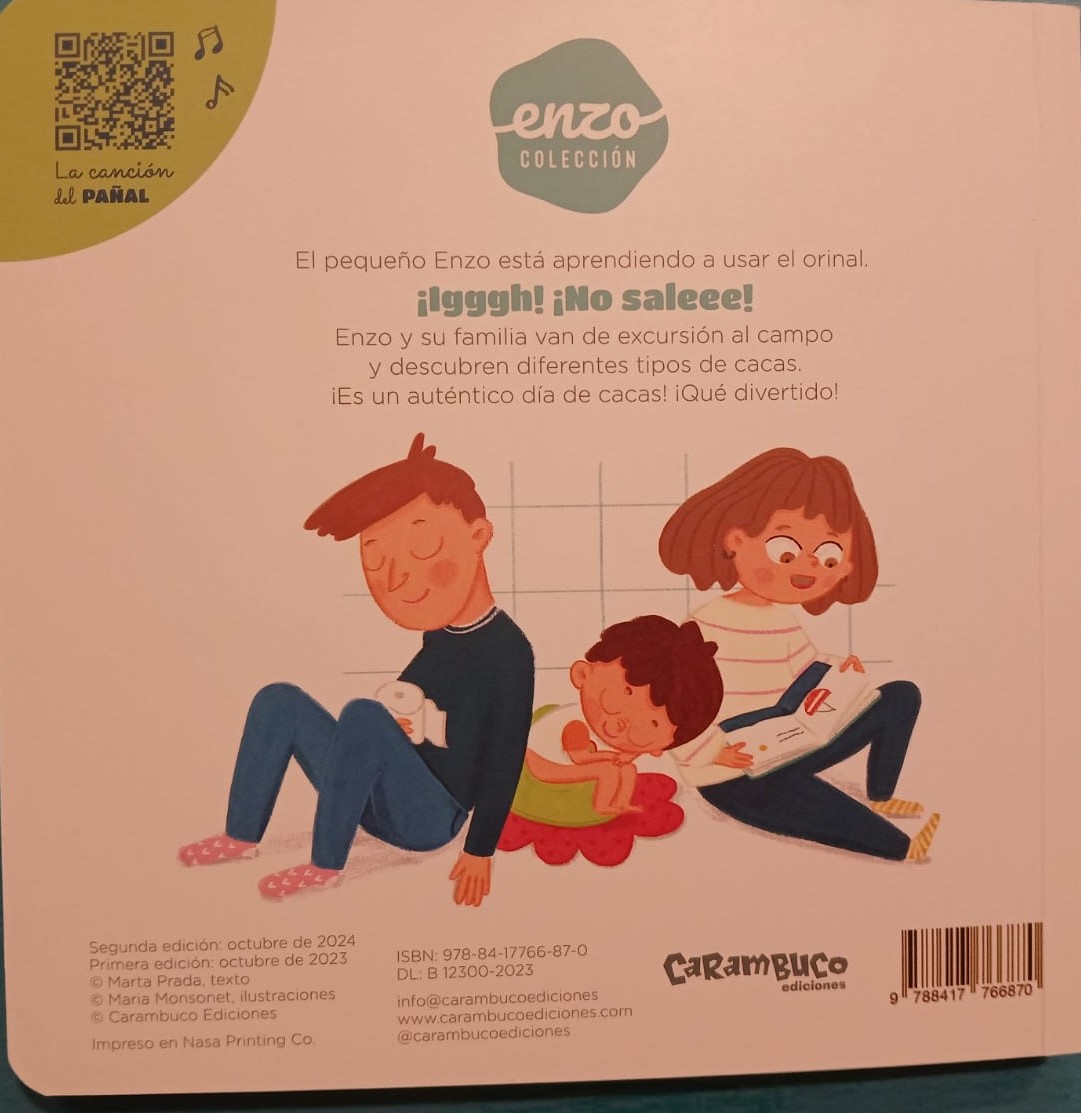 El pequeño Enzo está aprendiendo a usar el orinal. ¡Igggh! ¡No saleee! Enzo y su familia van de excursión al campo y descubren diferentes tipos de cacas. ¡Es un auténtico día de cacas! ¡Qué divertido! Incluye La canción del pañal, interpretada por Marta