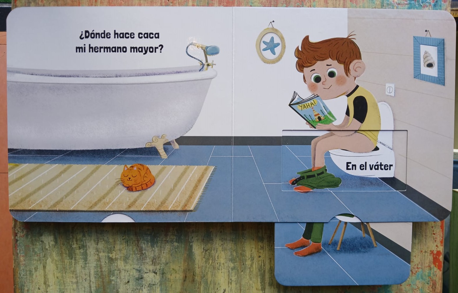 Todo el mundo hace sus necesidades, ¿pero dónde? ¿En el orinal? Tira de las pestañas y descubre las caquitas de los amigos que te rodean. Con o sin orinal, ¡es muy divertido!